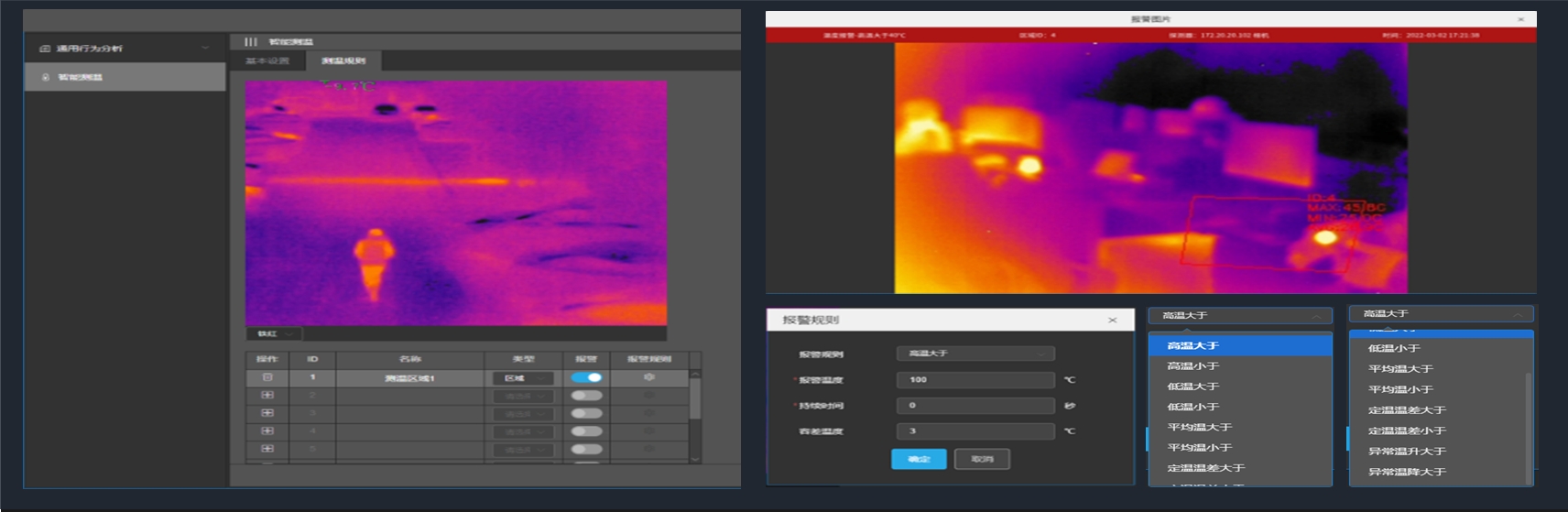 采用高清可見光和高靈敏度熱成像雙光譜成像架構(gòu),搭載前端實時融合處理技術(shù),可實現(xiàn)多種維度火災特征分析,可以同時識別火災的火焰、煙霧、溫度等特征信息,能夠?qū)崿F(xiàn)單一參數(shù)報警或多參數(shù)復合報警;
